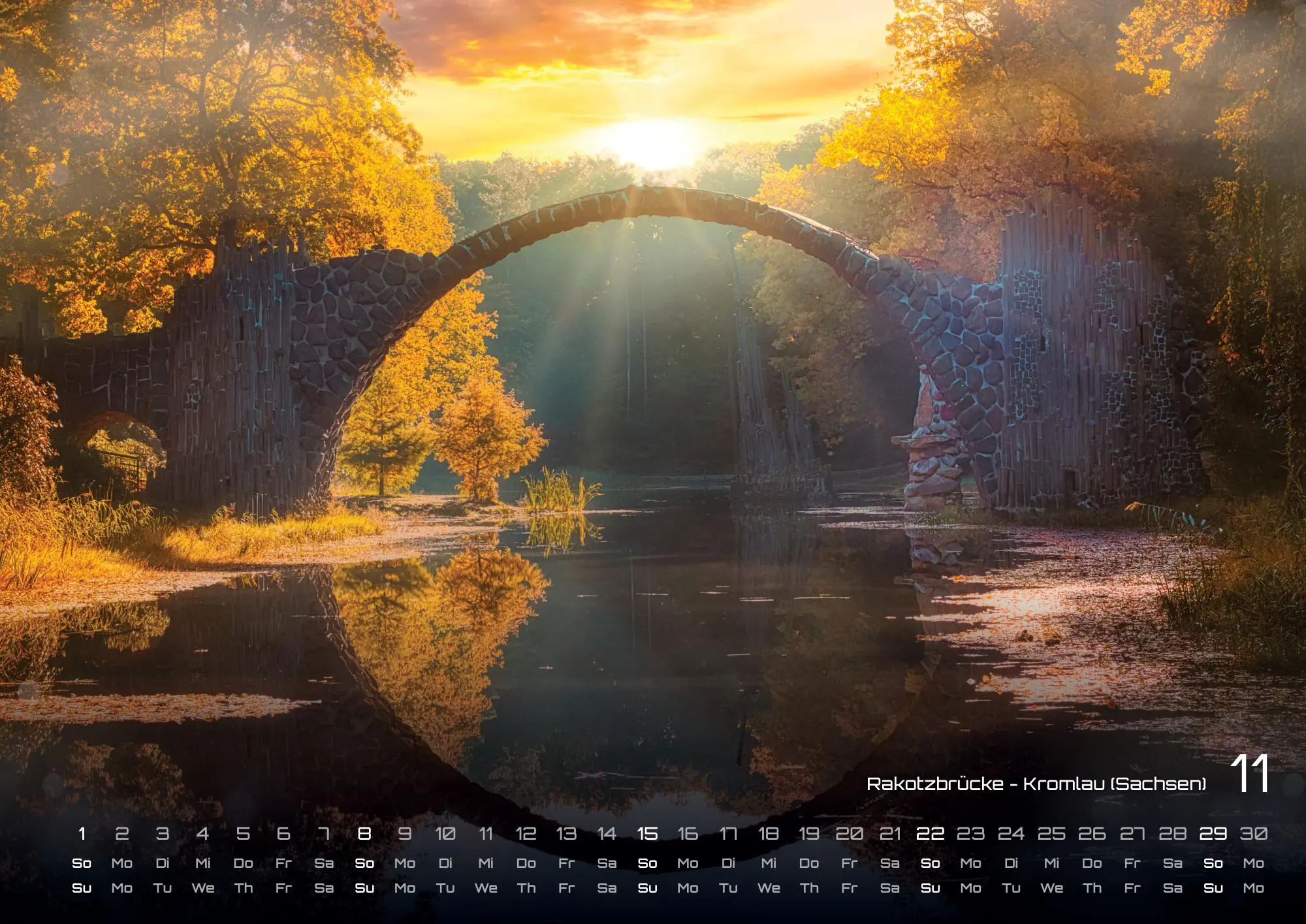 Auch in diesem Jahr könnt Ihr euch über 14 hochwertige Aufnahmen im Kalender Deutschland 2026 freuen! Ob Nord, Ost, Süd oder West - hier findet Ihr Landschaftsmotive und beliebte Sehenswürdigkeiten. Seid gespannt auf brillante Aufnahmen und sichert euch euer Exemplar im Format DIN A3, DIN A2 (extragroß) für das Jahr 2026!