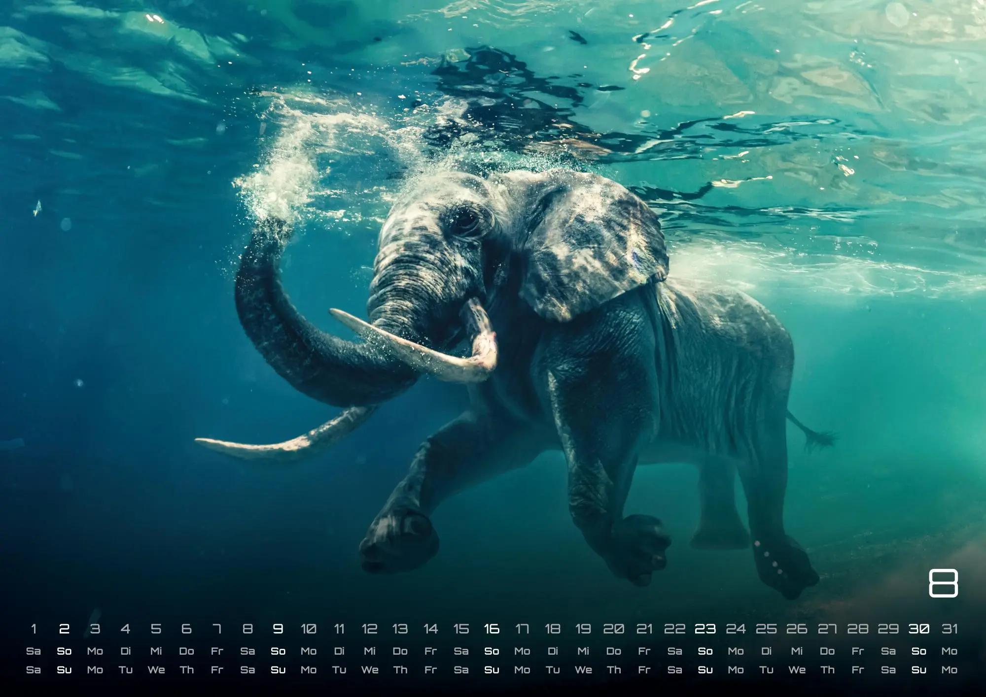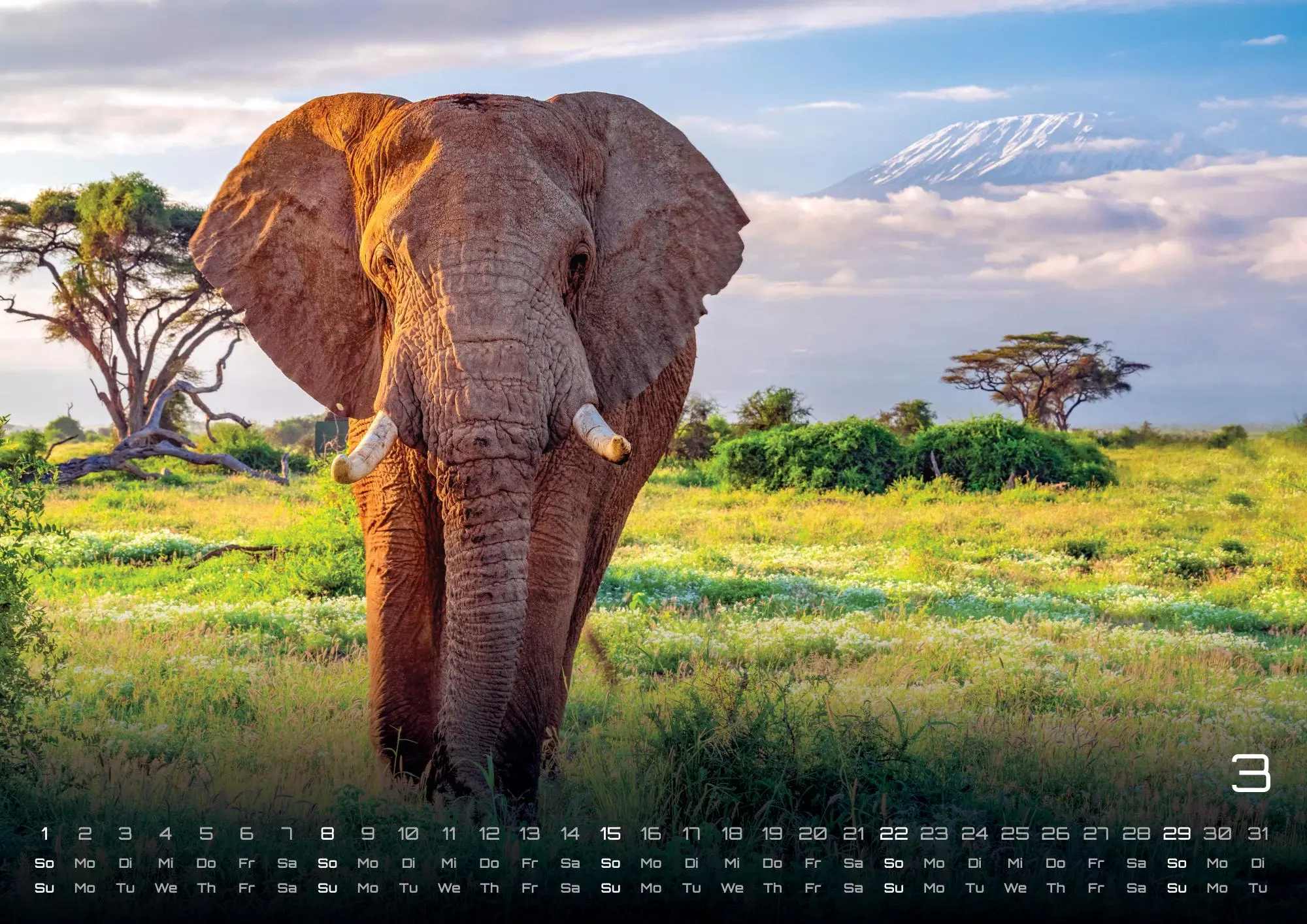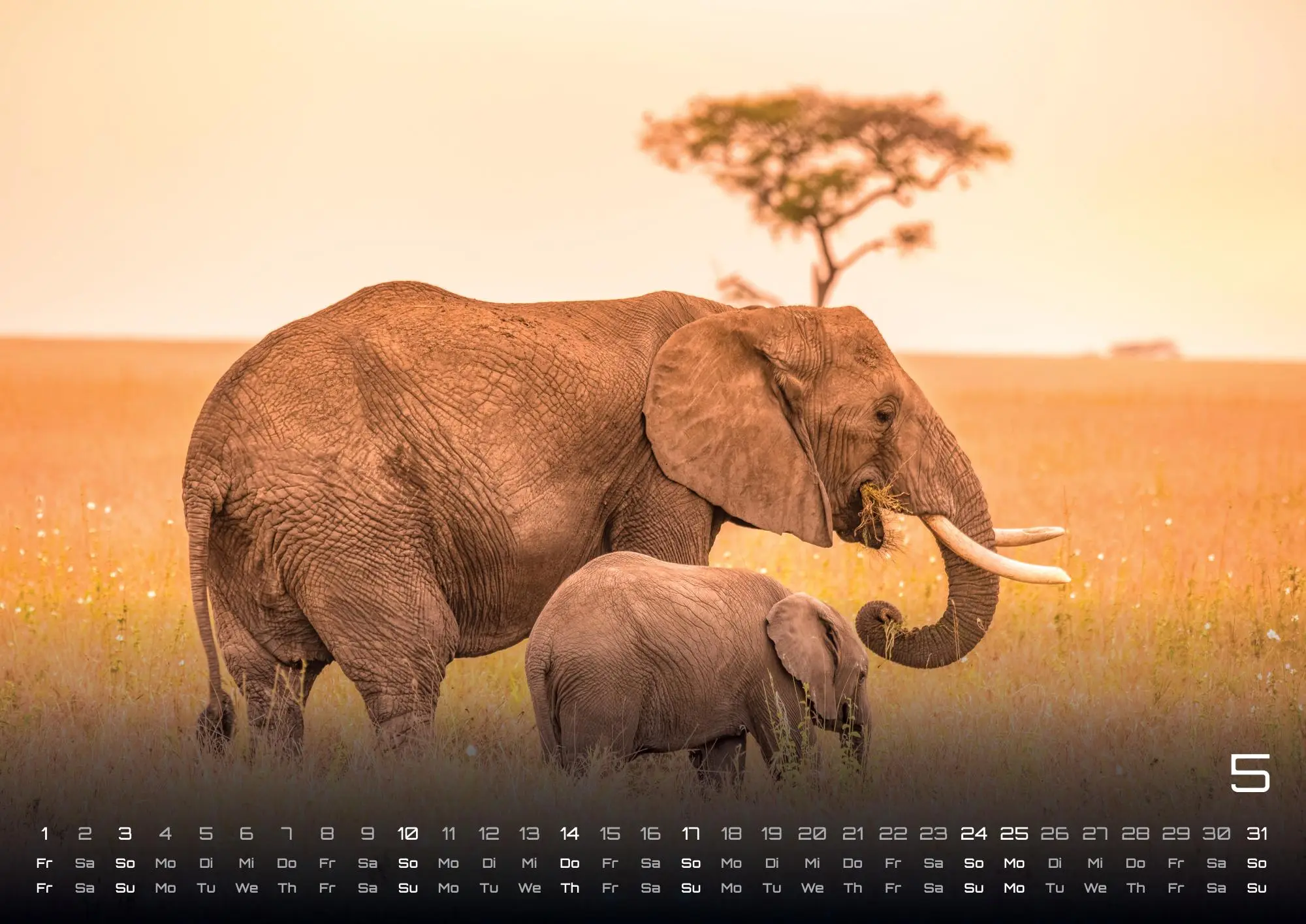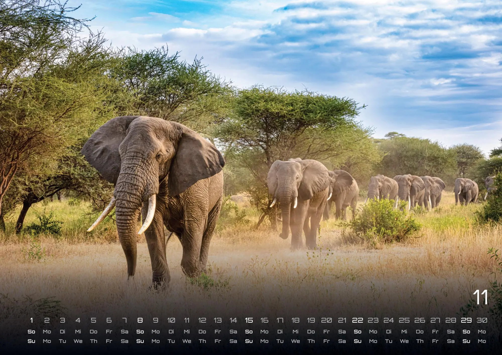 Die sympathischen Rüsseltiere - Elefanten! Seid gespannt auf brillante Aufnahmen der gigantischen Tiere und sichert euch euer Exemplar im Format DIN A3, DIN A2 (extragroß) für das Jahr 2026!