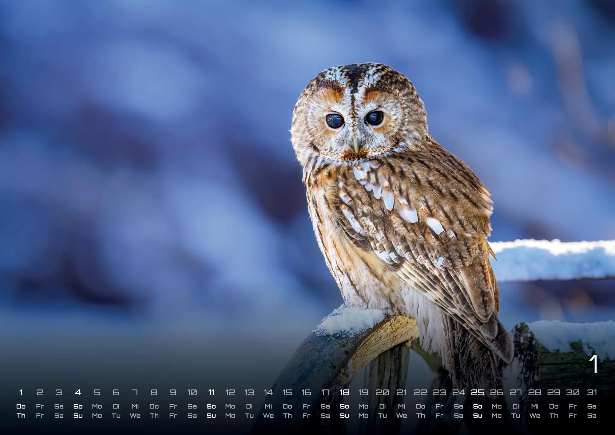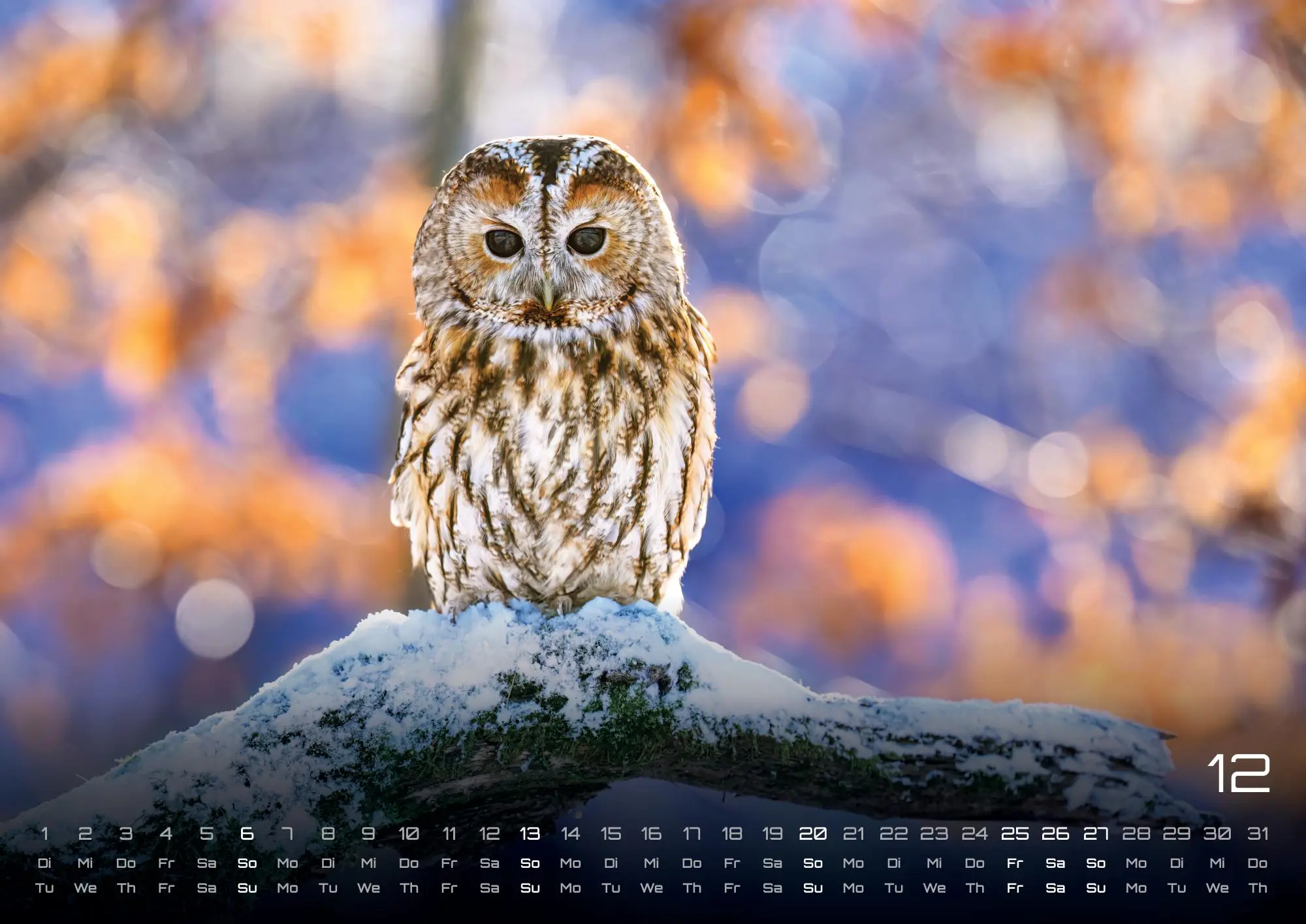 Kaum Sichtbar - die Wächter der Nacht! Seid gespannt auf brillante Aufnahmen der Eulen, Uhus oder Kauze und sichert euch euer Exemplar im Format DIN A3, DIN A2 (extragroß) für das Jahr 2026!