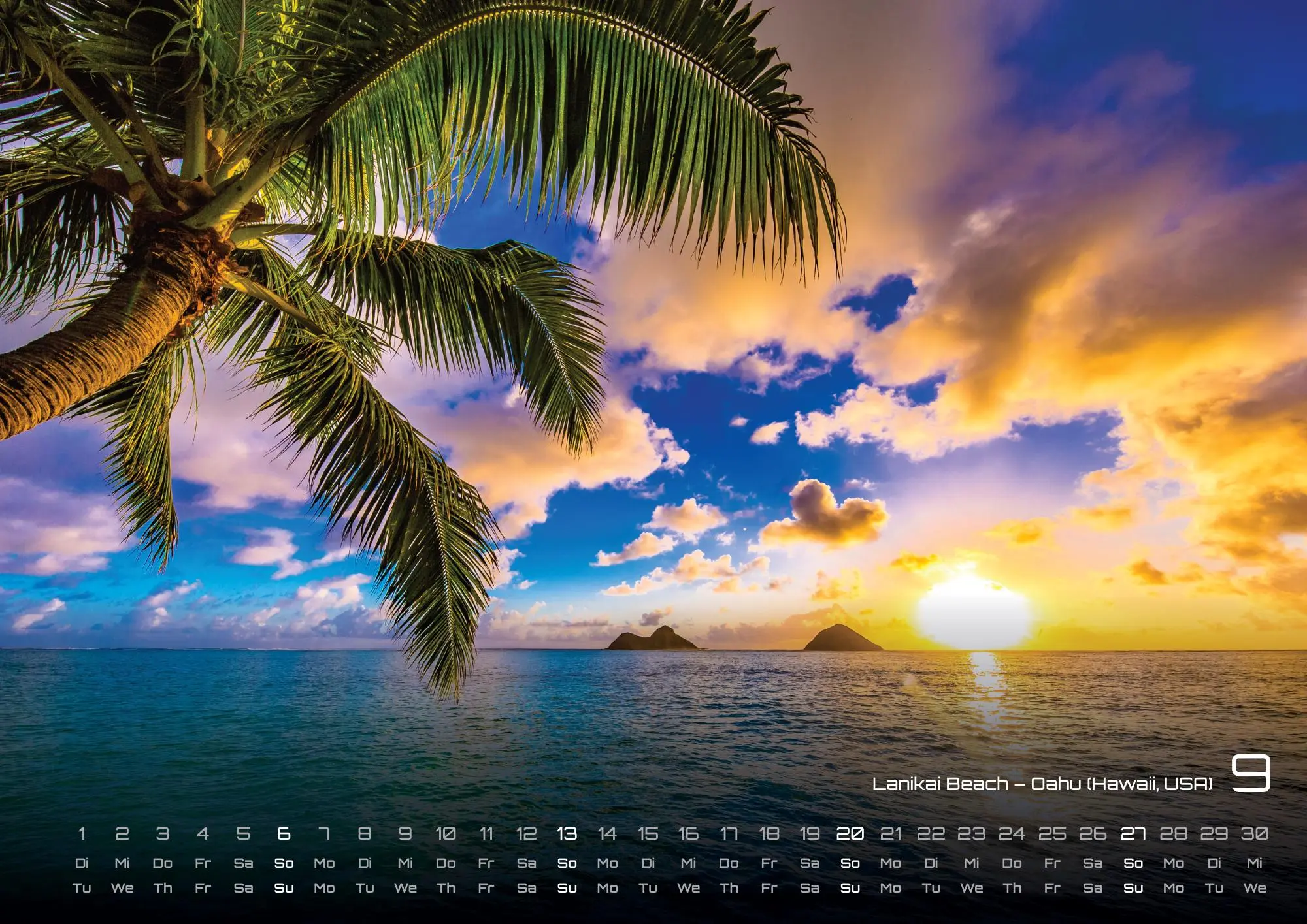 Ab ins Paradies - lasst euch von 14 faszinierende Aufnahmen die Schönheit der Traum-Strände und Inseln unserer Welt in euer Wohnzimmer bringen. Es erwarten euch wundervolle Strände und Inseln unserer Erde. Seid gespannt und sichert euch euer Exemplar im Format DIN A3, DIN A2 (extragroß) für das Jahr 2026!