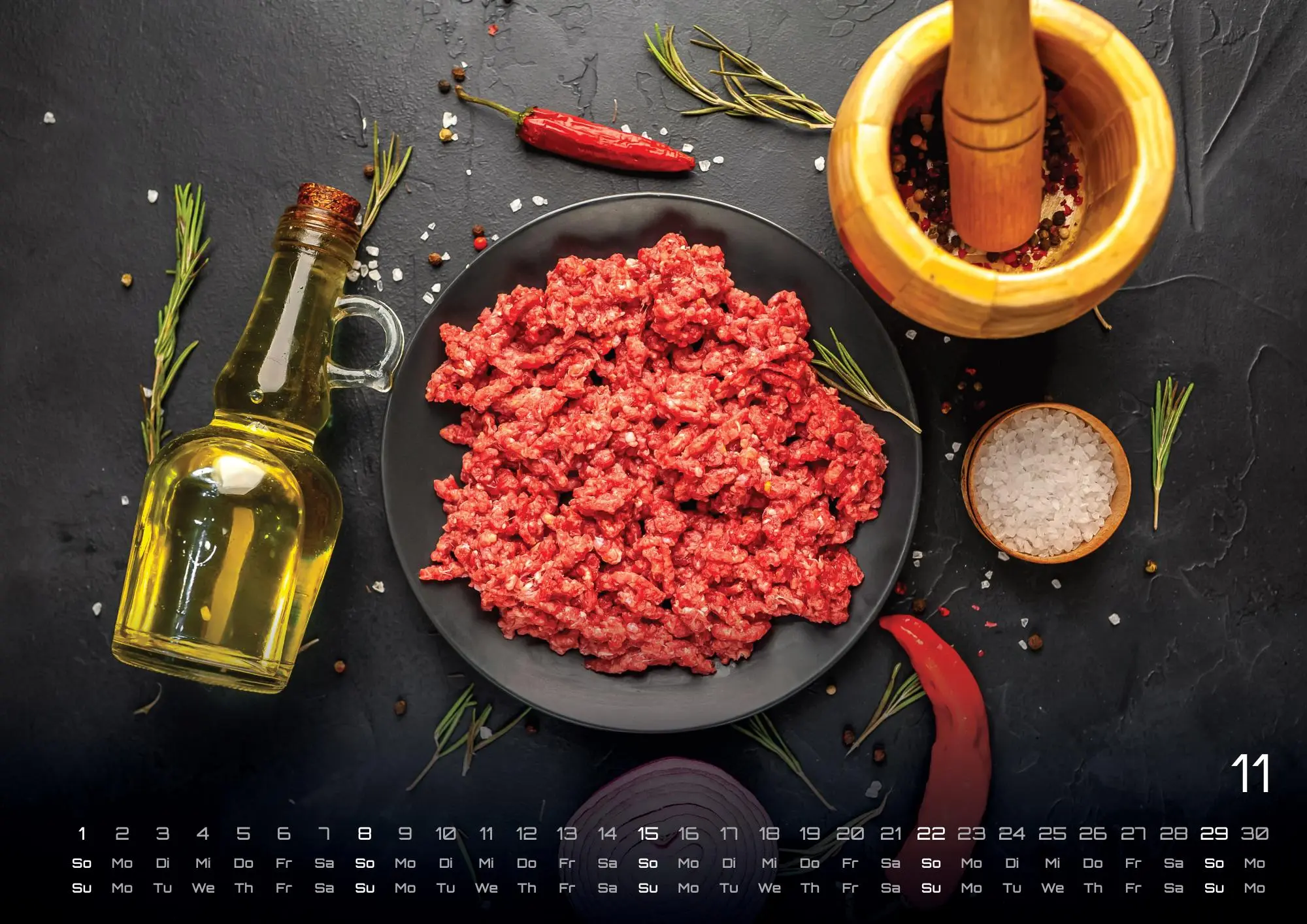 Alles wird aus Hack gemacht! Ihr liebt die Mettbrötchen, Mamas Bouletten / Frikadellen oder einen feinen Hackfleischauflauf? Dann ist der Kalender die perfekte Idee für dich - sicher Dir dein Exemplar im Format DIN A3 oder DIN A2 (extragroß) für das Jahr 2026!