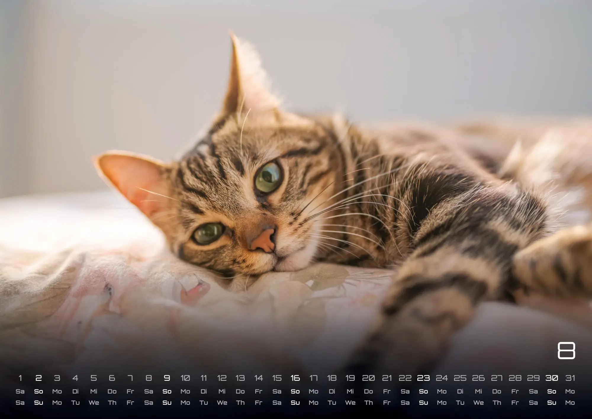 Dieser hochwertige Kalender, bietet euch 14 tolle Katzen-Motive. Monat für Monat gibts neue packende Motive für die Freunde unserer Samtpfoten! Seid gespannt auf brillante Aufnahmen und sichert euch euer Exemplar im Format DIN A3, DIN A2 (extragroß) für das Jahr 2026!