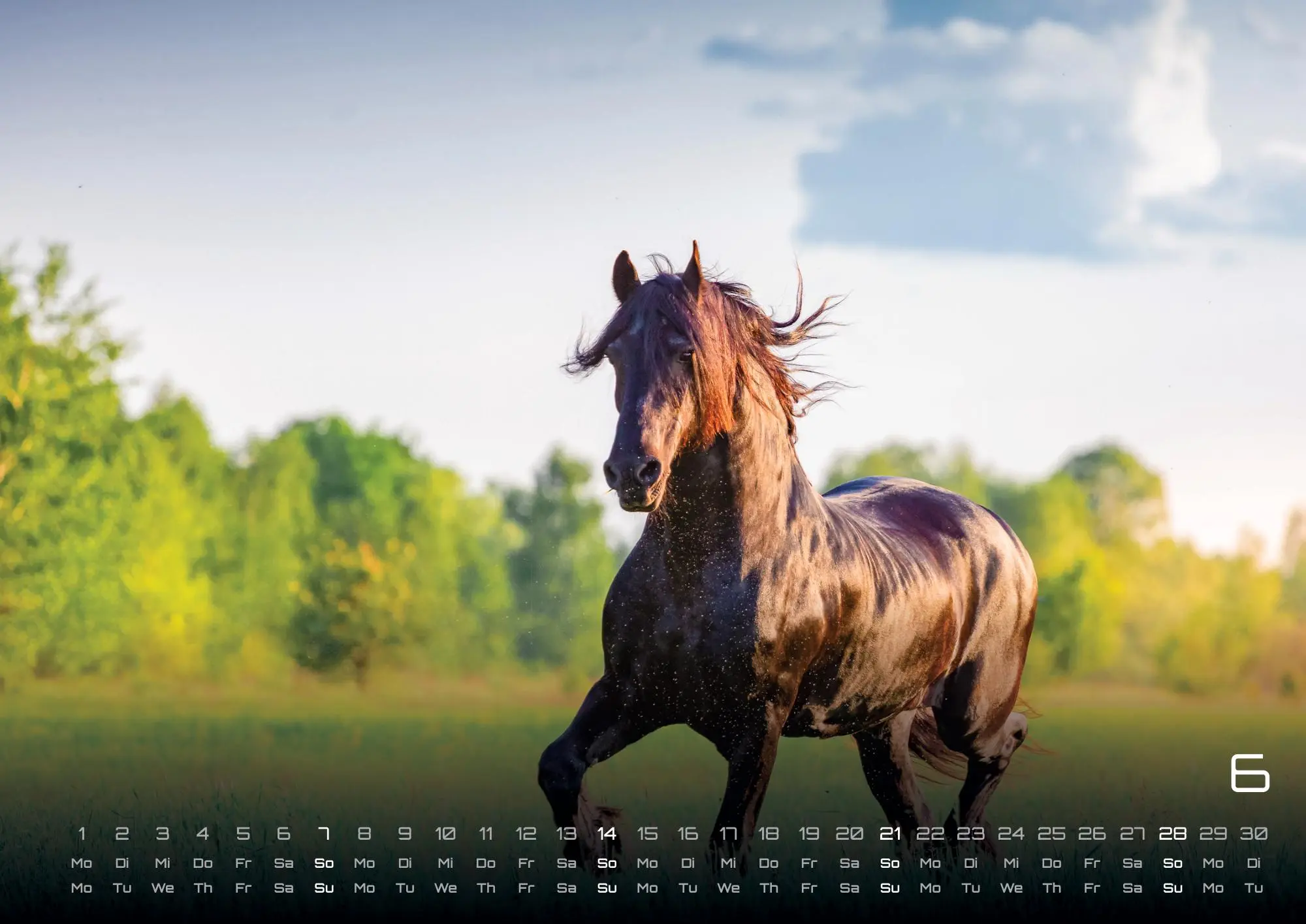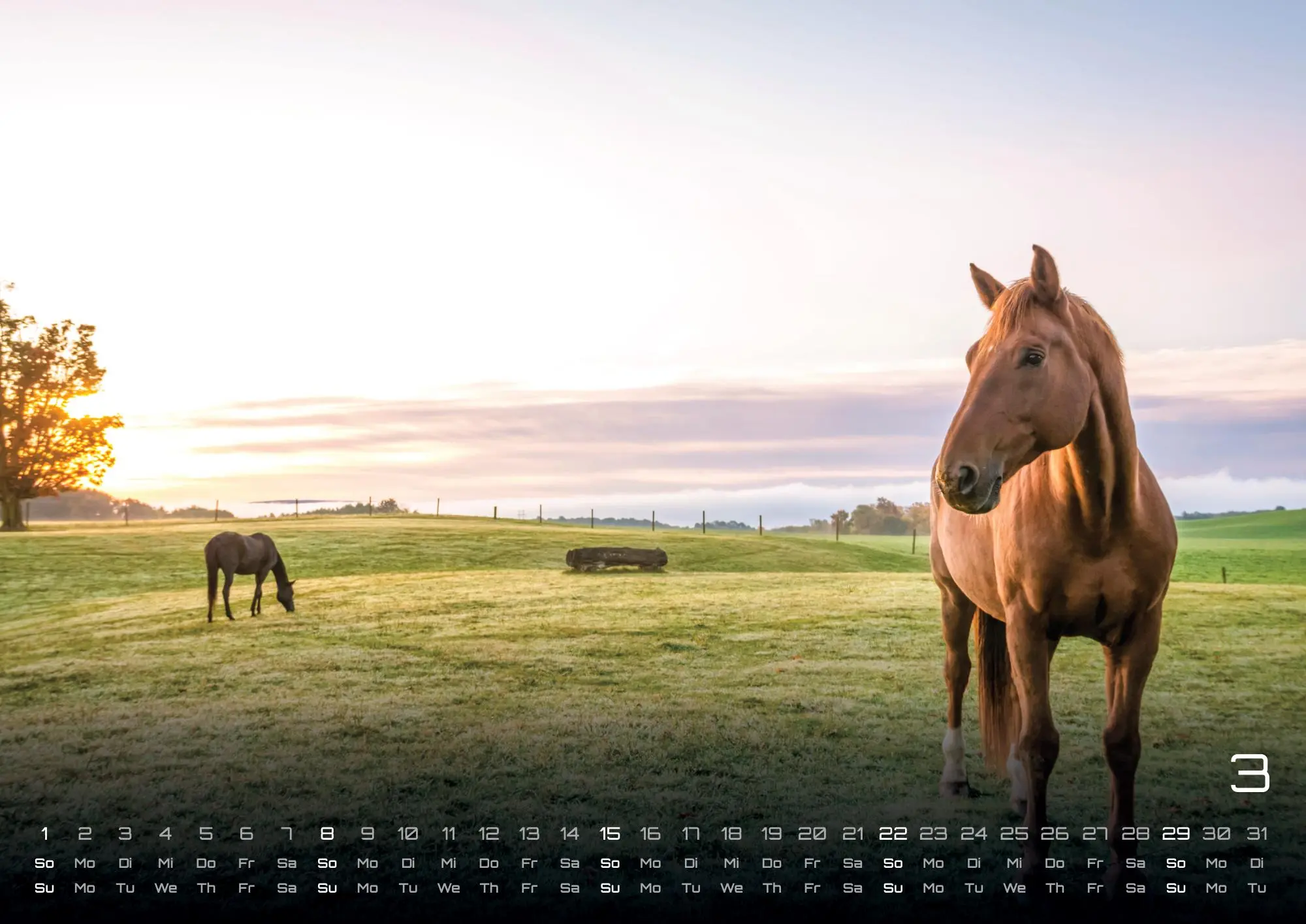 Unsere Pferde wundervoll in Szene gesetzt, erhaltet Ihr im Kalender Pferdegeflüster 2026. Es erwarten euch 14 überwältigende Aufnahmen dieser graziösen Huftiere. Sichert euch euer Exemplar im Format DIN A3, DIN A2 (extragroß) für das Jahr 2026!