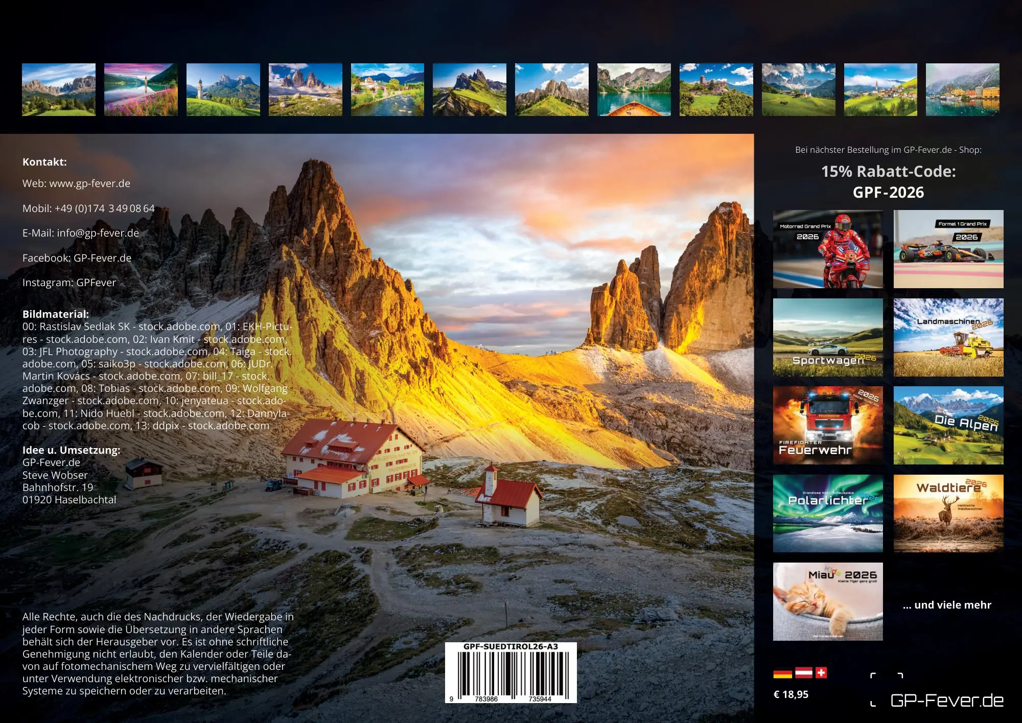 Ob Wossa, Hogl oda Brond, bei da Tiroler bist in guata Hond - Und in guten Händen bist du auch bei uns! Mit unserem liebevoll gestalteten Kalender sämtlicher Regionen Südtirols. Ob die Dolomiten oder Federa See - Lass dich von 14 hochwertigen Aufnahmen dieser wundervollen Landschaft begeistern. Seid gespannt und sichert euch euer Exemplar im Format DIN A3, DIN A2 (extragroß) für das Jahr 2026!