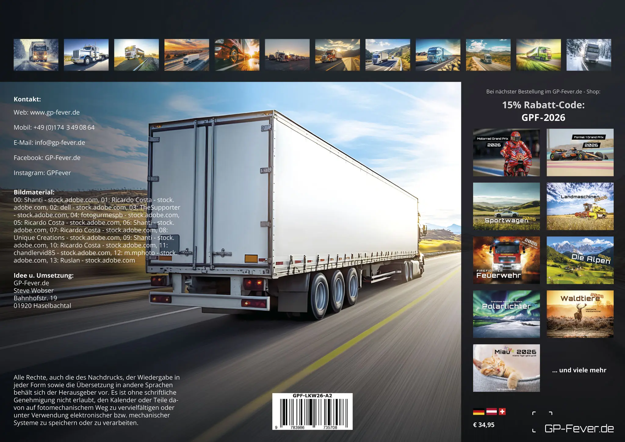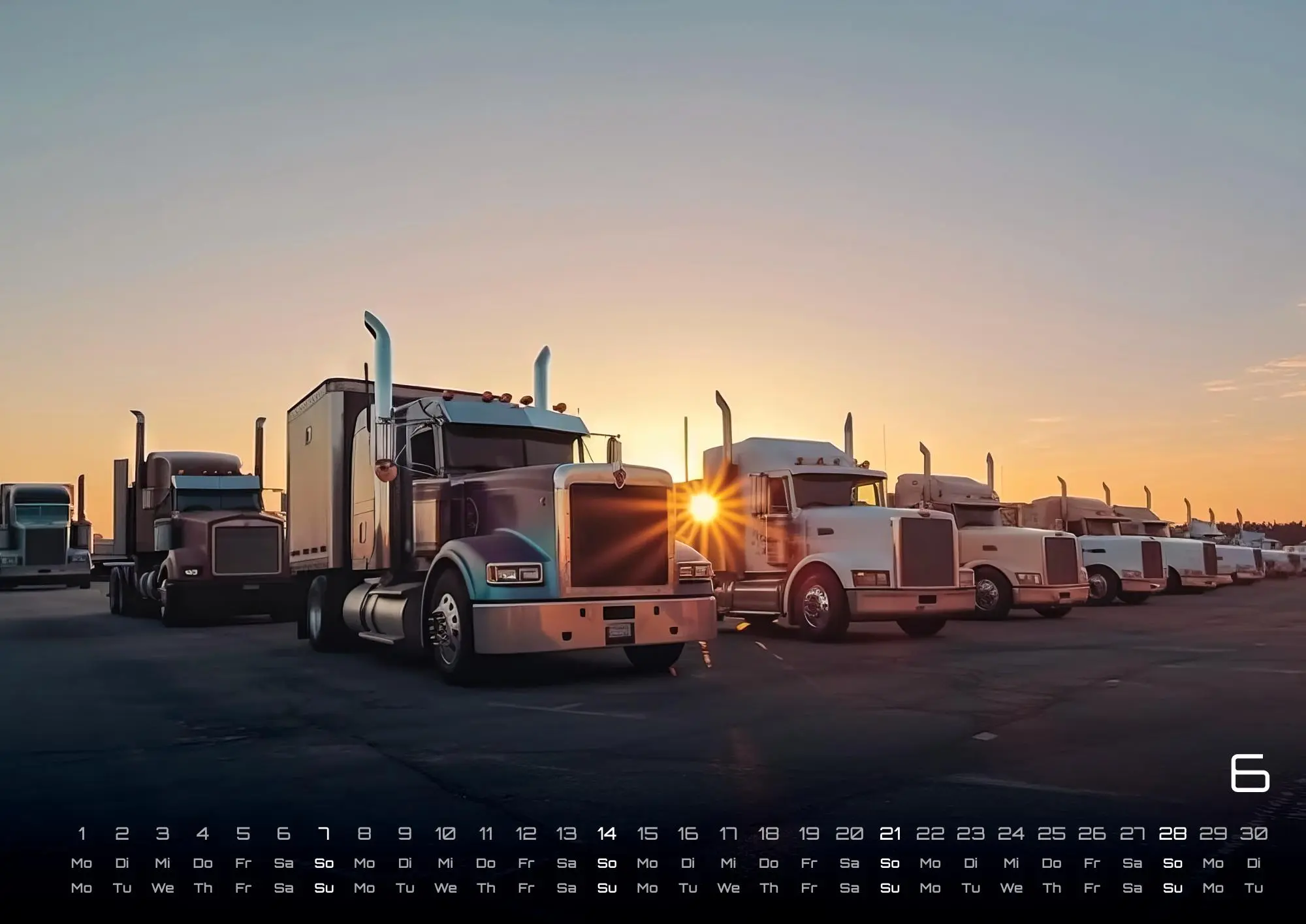Die Könige der Strasse! Von Lebensmitteltransporten bis hin zu Schwerlasttransporten - Diese Kings haben größtes Lob verdient. Diesen gibts bei uns in Form eines Kalnders mit 14 brillianten Aufnhamen. Seid gespannt und sichert euch euer Exemplar im Format DIN A3, DIN A2 (extragroß) für das Jahr 2026!