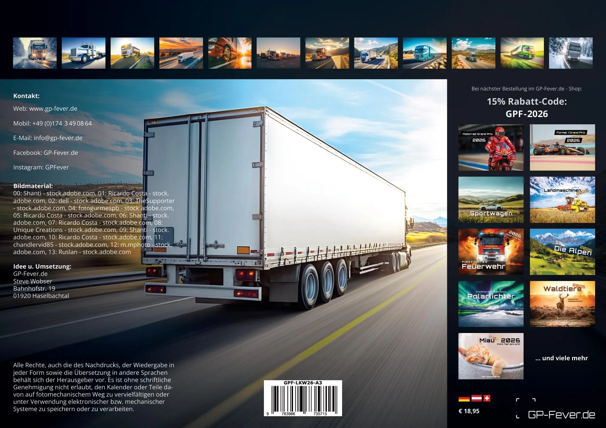 Die Könige der Strasse! Von Lebensmitteltransporten bis hin zu Schwerlasttransporten - Diese Kings haben größtes Lob verdient. Diesen gibts bei uns in Form eines Kalnders mit 14 brillianten Aufnhamen. Seid gespannt und sichert euch euer Exemplar im Format DIN A3, DIN A2 (extragroß) für das Jahr 2026!