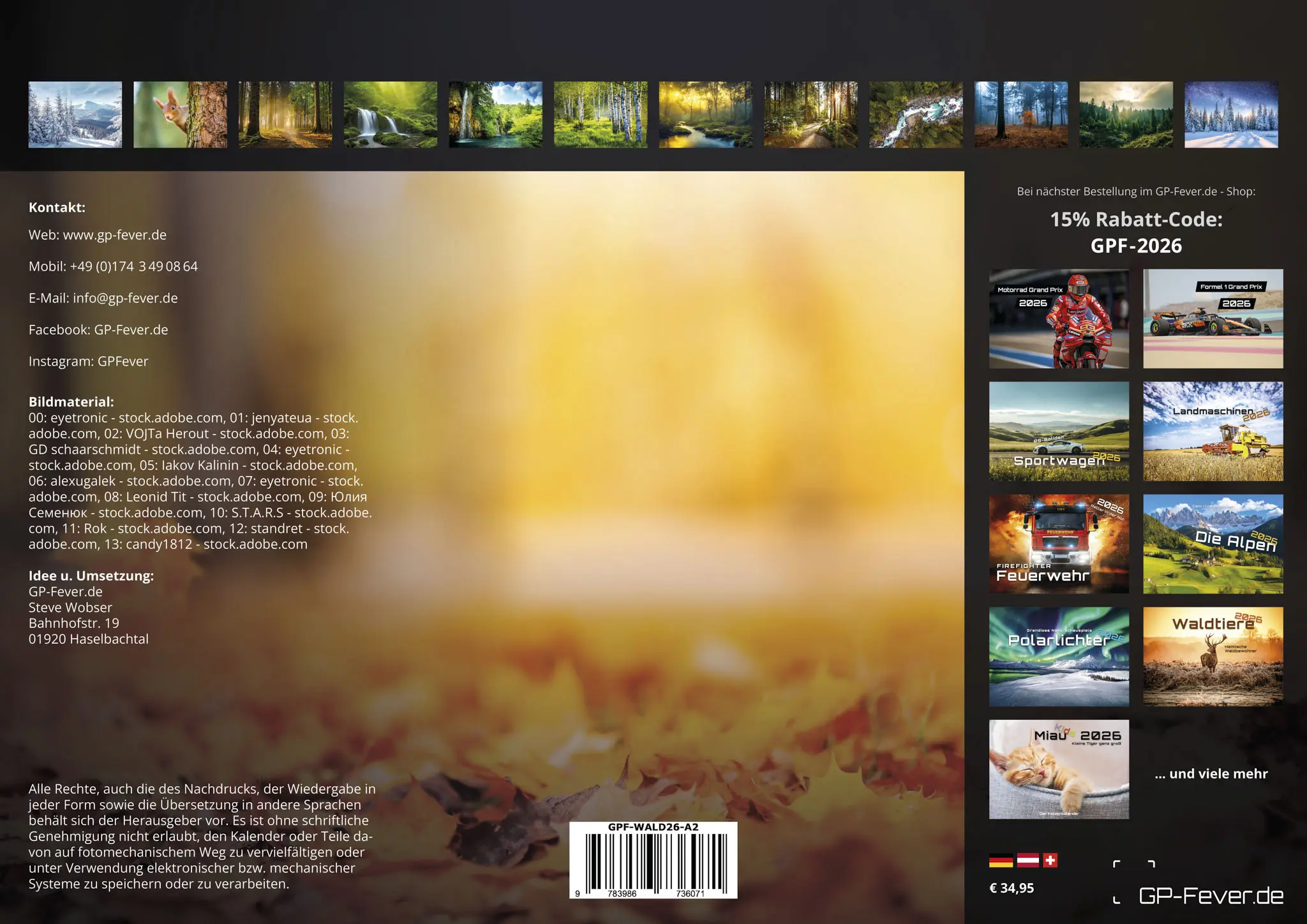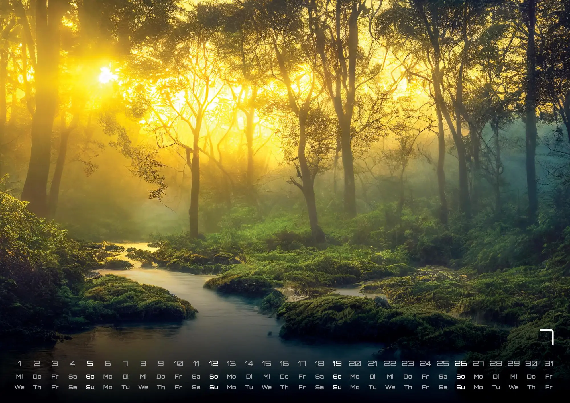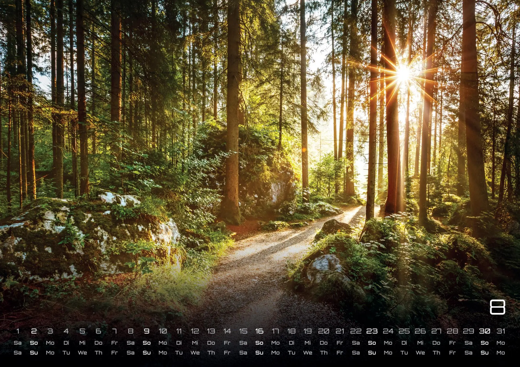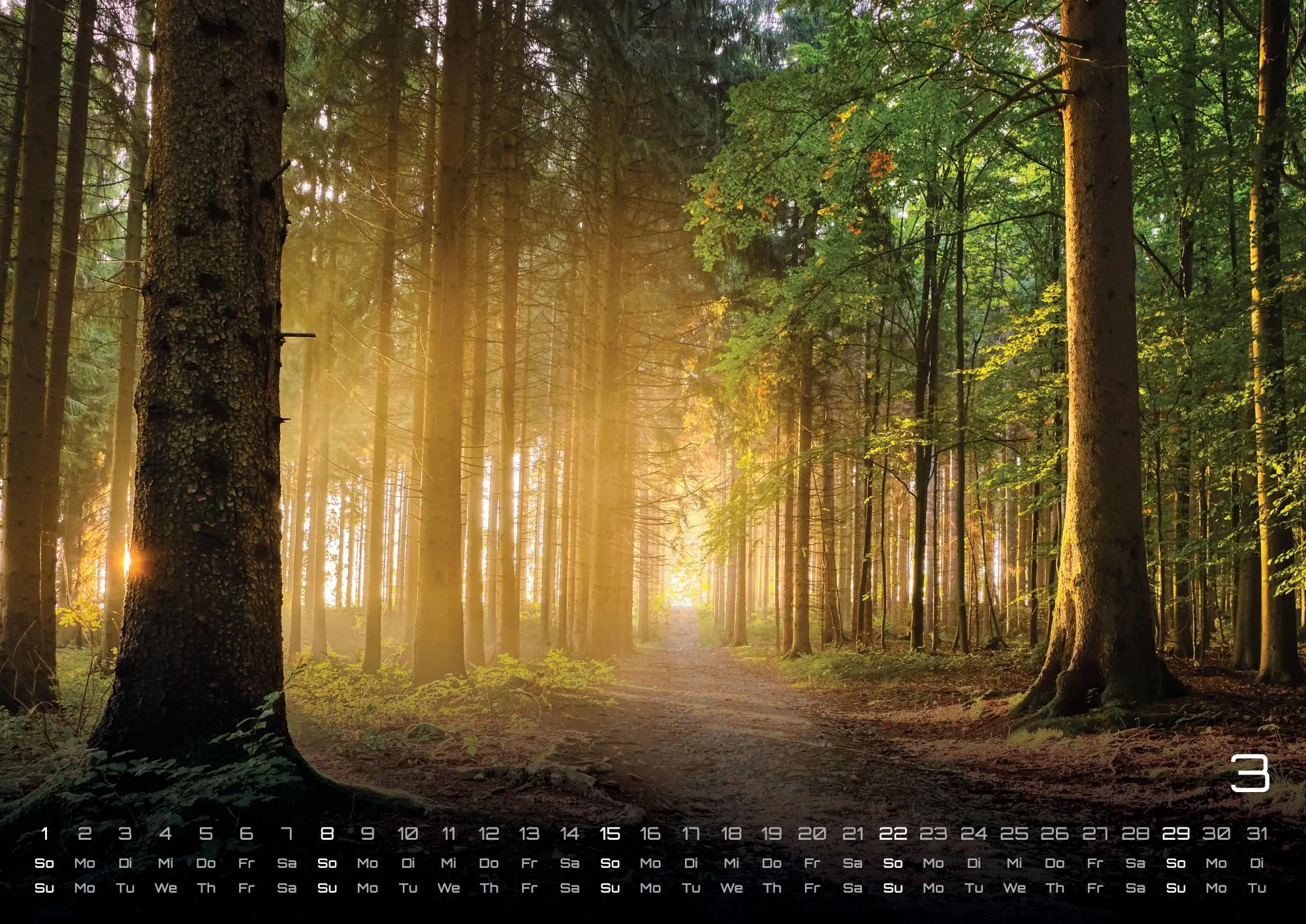 Wälder - oft fehlt es an Zeit die Erholungsorte vor unserer Haustür zu besuchen. Wir haben im Wald-Kalender 2026, 14 Wald-Fotos für euch zusammengestellt. Seid gespannt auf brillante Aufnahmen und sichert euch euer Exemplar im Format DIN A3, DIN A2 (extragroß) für das Jahr 2026!