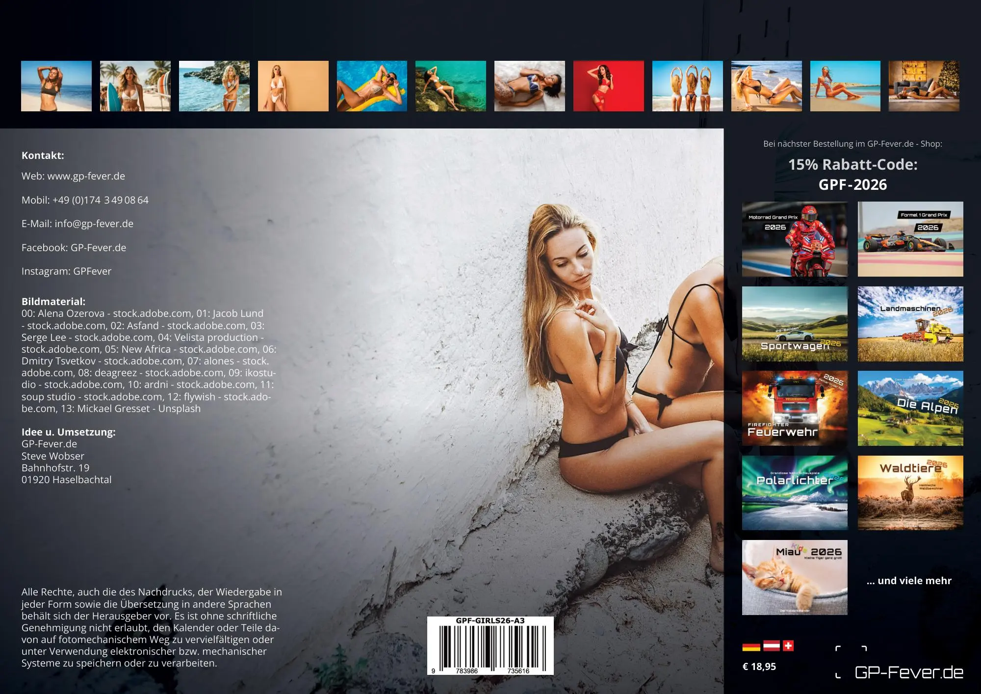 Der hochwertige Kalender mit Fotos der besten Bikini Girls, bietet euch 13 heiße Fotos für das Jahr 2026 im Format DIN A3 oder DIN A2 (extragroß). Ideal für dein Büro, die Garage oder den Hobbyraum - hole dir die Girls direkt zu Dir nach Hause!