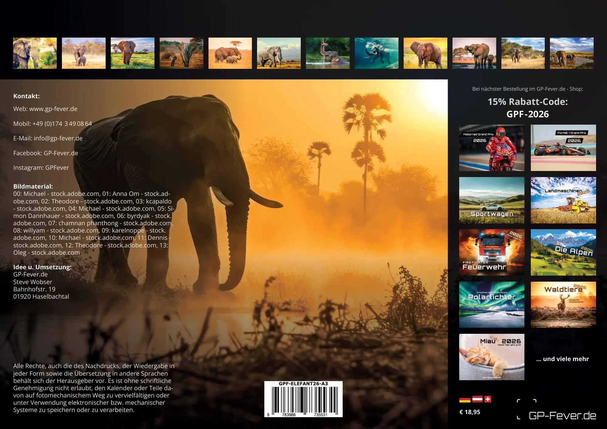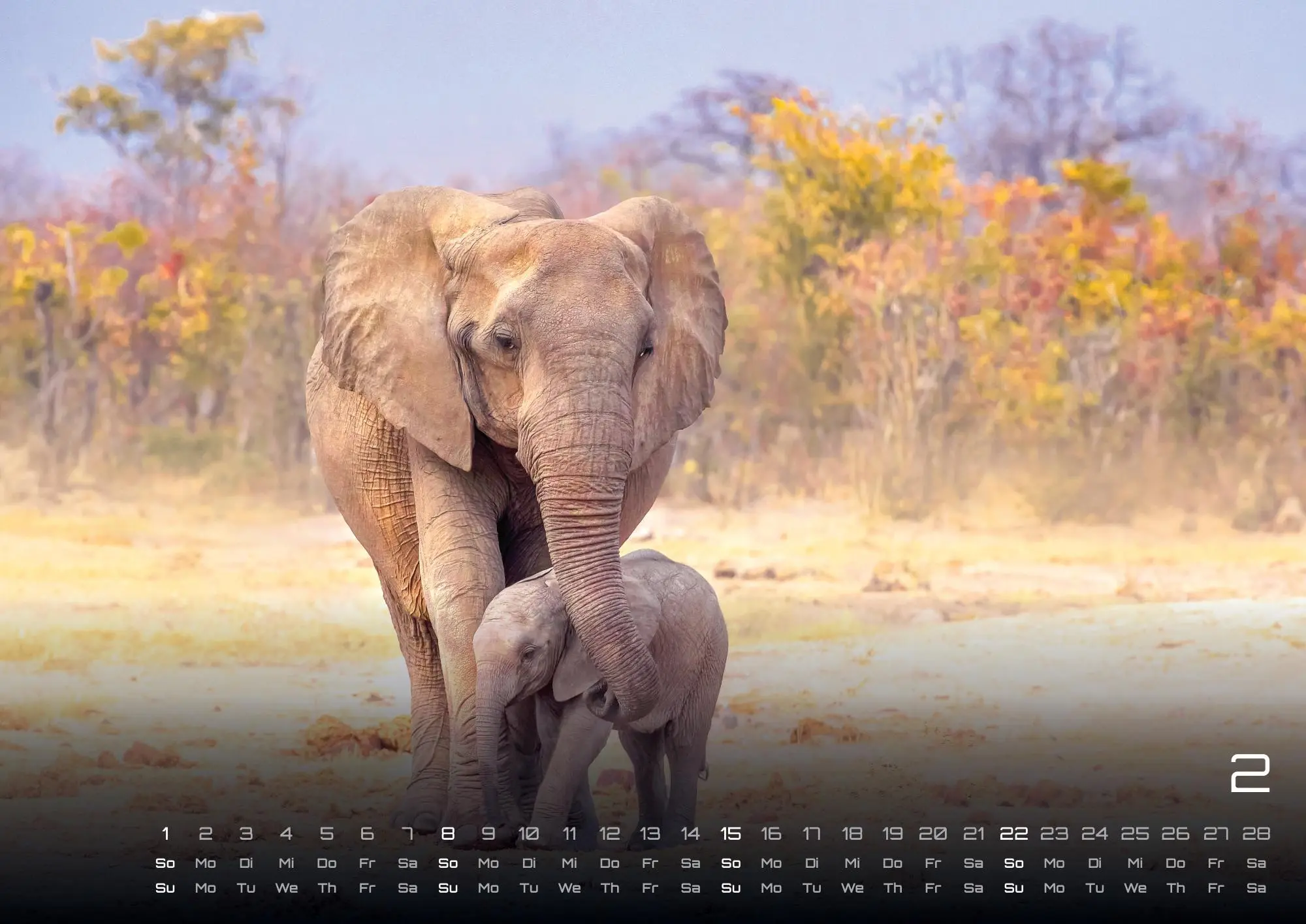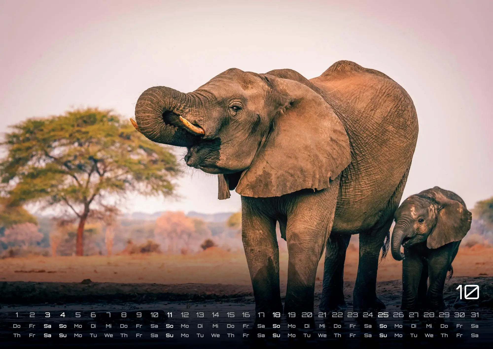 Die sympathischen Rüsseltiere - Elefanten! Seid gespannt auf brillante Aufnahmen der gigantischen Tiere und sichert euch euer Exemplar im Format DIN A3, DIN A2 (extragroß) für das Jahr 2026!