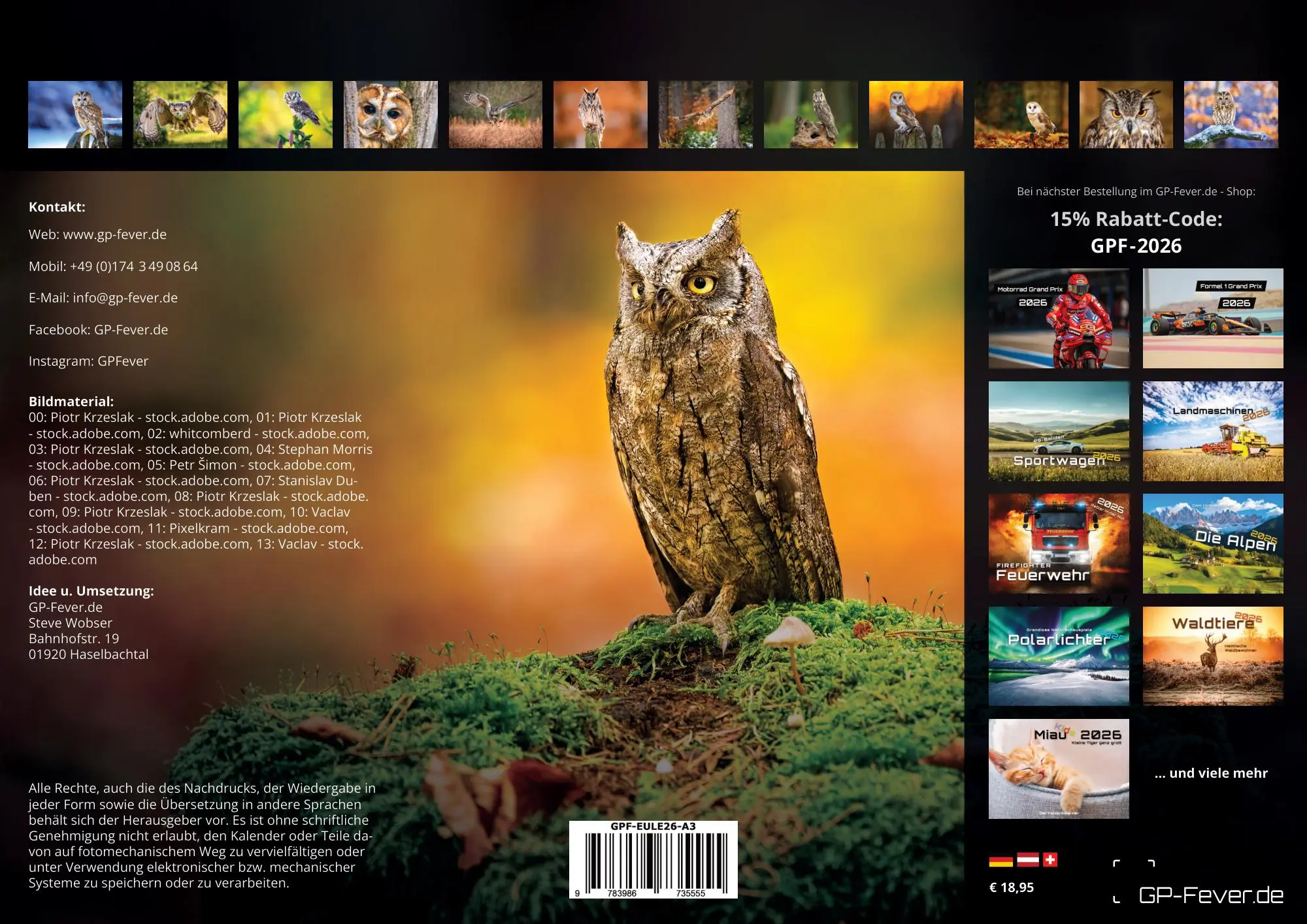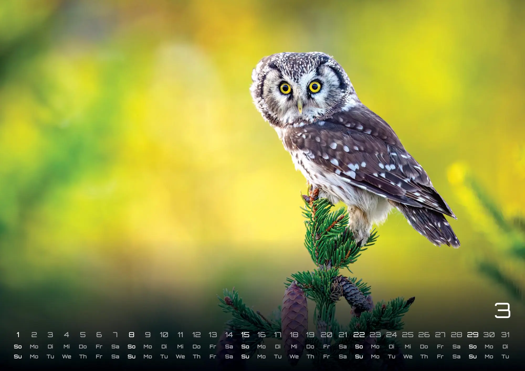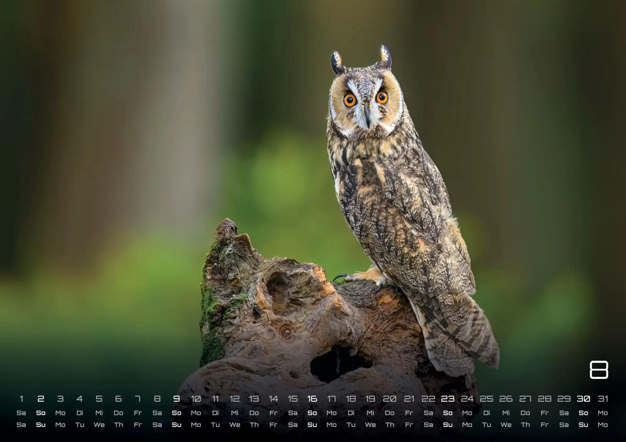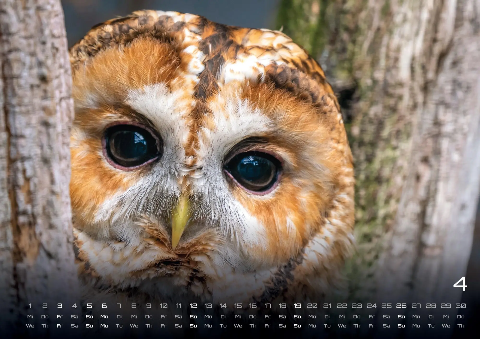 Kaum Sichtbar - die Wächter der Nacht! Seid gespannt auf brillante Aufnahmen der Eulen, Uhus oder Kauze und sichert euch euer Exemplar im Format DIN A3, DIN A2 (extragroß) für das Jahr 2026!