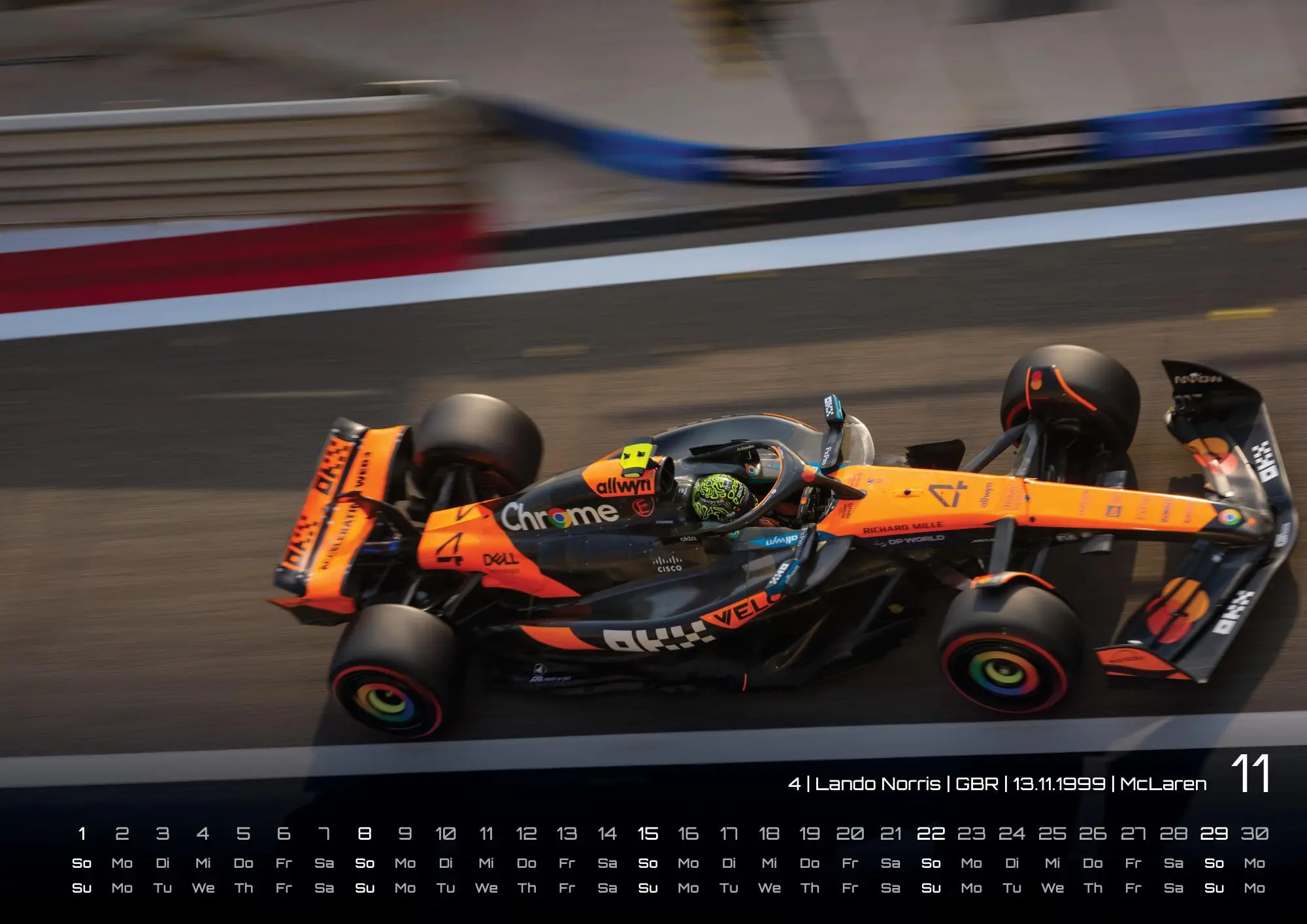Der hochwertige Wandkalender, welcher im Rahmen der Formel 1 Weltmeisterschaft mit aktuellen Motiven erstellt wurde, bietet euch 13 packende Fotos für das Jahr 2026 - wahlweise im Format DIN A3, DIN A2 (extragroß) für das Jahr 2026! Die Stars der Szene (Hamilton, Verstappen, Perez, Leclerc, Vettel, Schumacher u.v.m.) liefern euch in jedem Monat eine packende Aufnahme - sichert euch das ideale Geschenk für jeden F1-Fan!