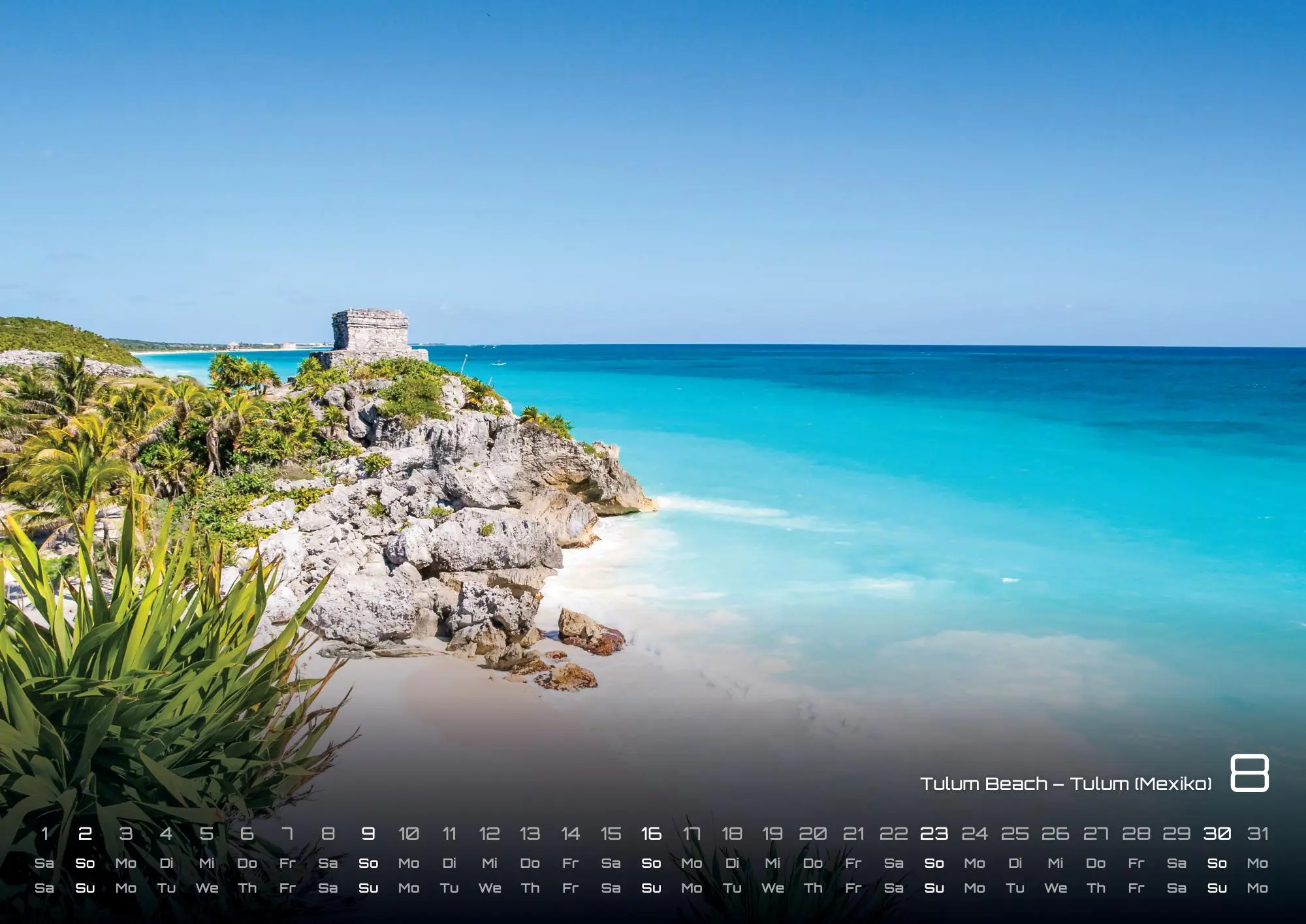 Ab ins Paradies - lasst euch von 14 faszinierende Aufnahmen die Schönheit der Traum-Strände und Inseln unserer Welt in euer Wohnzimmer bringen. Es erwarten euch wundervolle Strände und Inseln unserer Erde. Seid gespannt und sichert euch euer Exemplar im Format DIN A3, DIN A2 (extragroß) für das Jahr 2026!