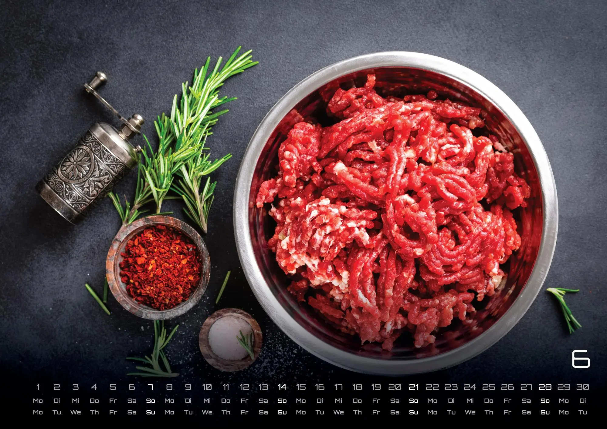 Alles wird aus Hack gemacht! Ihr liebt die Mettbrötchen, Mamas Bouletten / Frikadellen oder einen feinen Hackfleischauflauf? Dann ist der Kalender die perfekte Idee für dich - sicher Dir dein Exemplar im Format DIN A3 oder DIN A2 (extragroß) für das Jahr 2026!