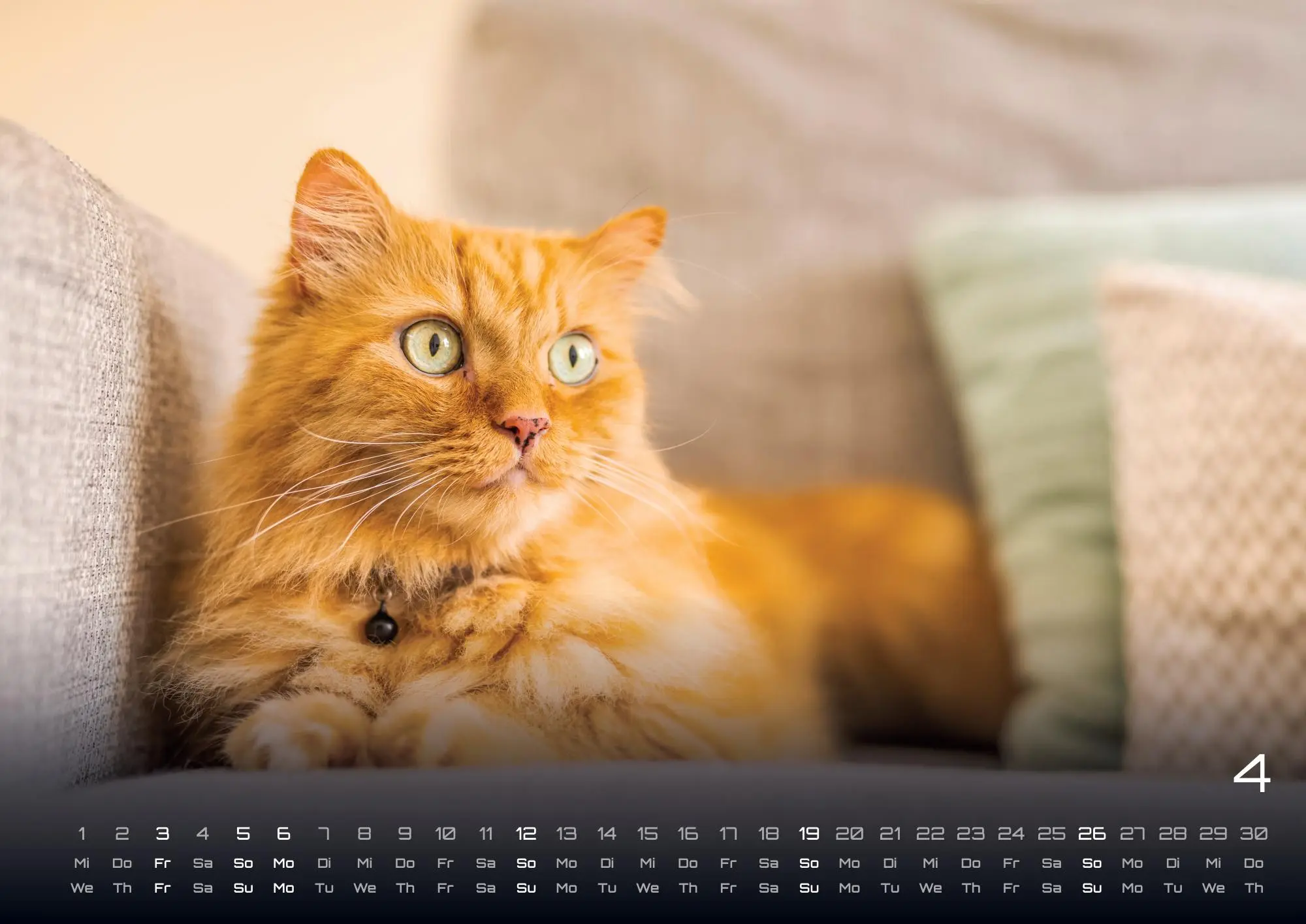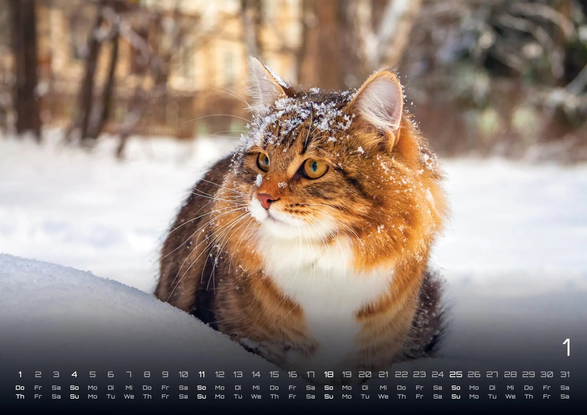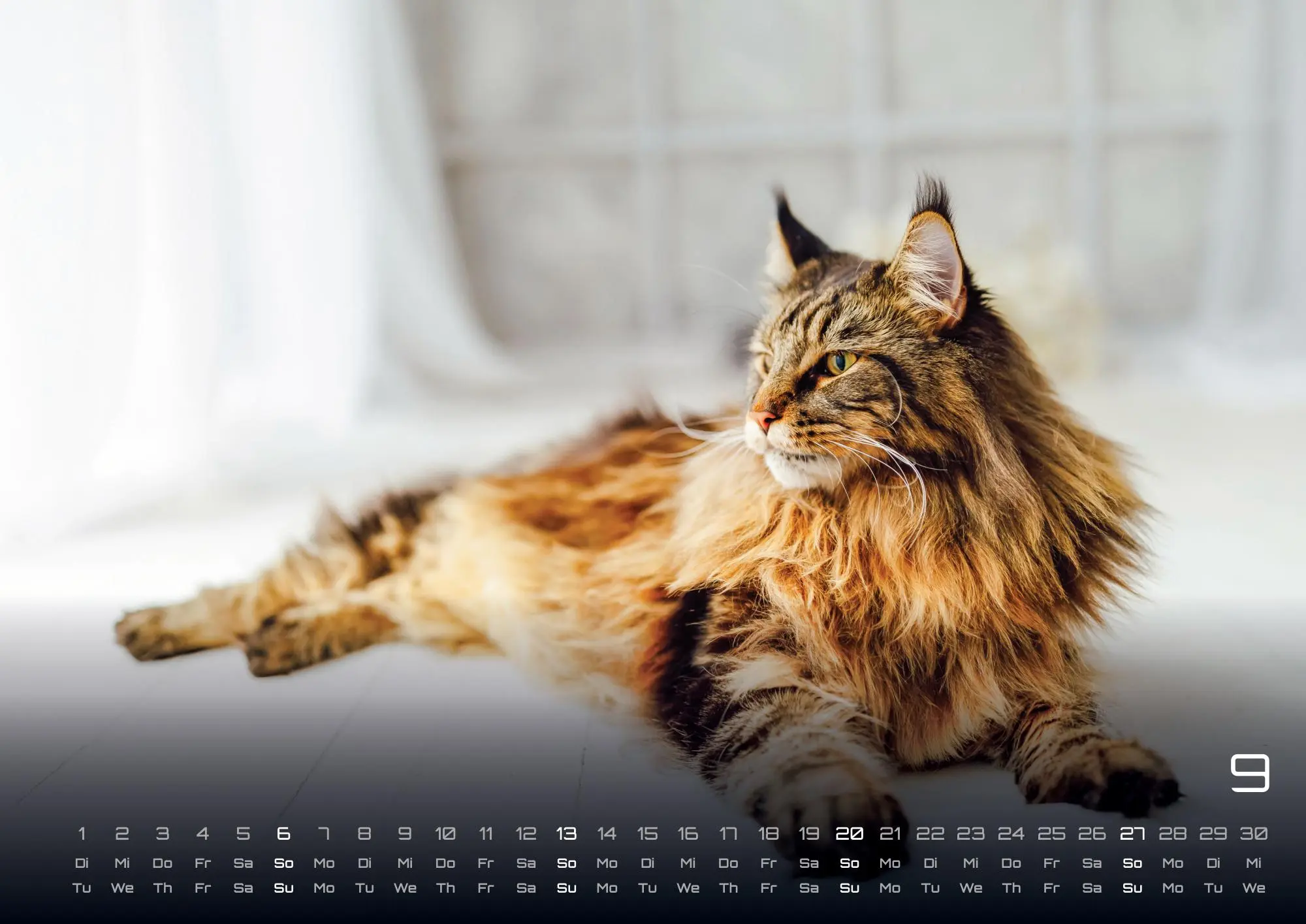 Dieser hochwertige Kalender, bietet euch 14 tolle Katzen-Motive. Monat für Monat gibts neue packende Motive für die Freunde unserer Samtpfoten! Seid gespannt auf brillante Aufnahmen und sichert euch euer Exemplar im Format DIN A3, DIN A2 (extragroß) für das Jahr 2026!