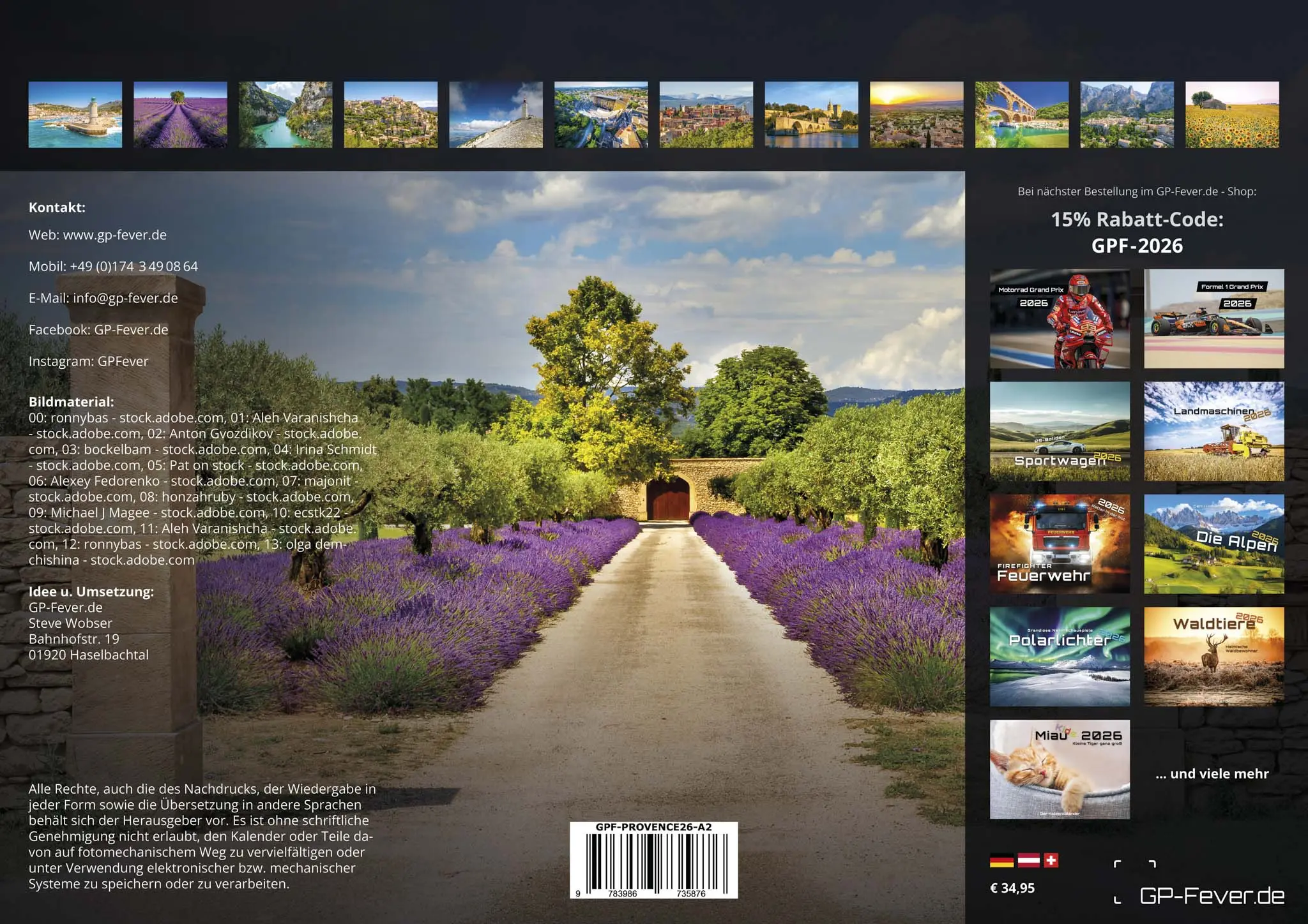 Provence im Südosten Frankreichs - lasst euch von 14 faszinierende Aufnahmen die Schönheit der Provence in euer Wohnzimmer bringen. Es erwarten euch wundervolle Sehenswürdigkeiten und Landschaften aus dem Süden Frankreichs. Seid gespannt und sichert euch euer Exemplar im Format DIN A3, DIN A2 (extragroß) für das Jahr 2026!